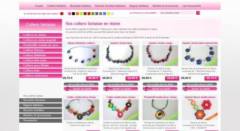 L'Éléphant Rose est un site de vente en ligne de bijoux fantaisie. Les bijoux sont classés par catégories mais aussi par couleurs pour optimiser le référencement et l'ergonomie. Les soldes et promotions sont fréquentes, et les prix tout petits !