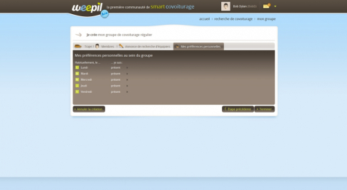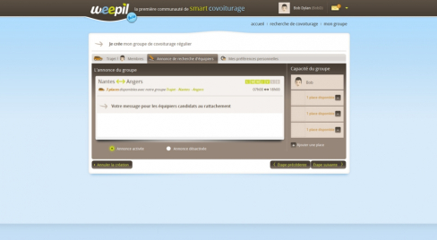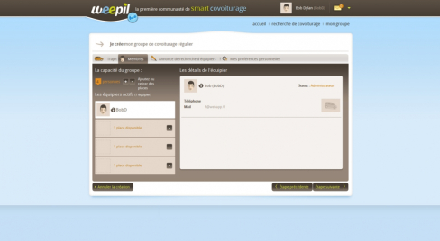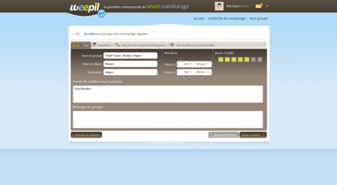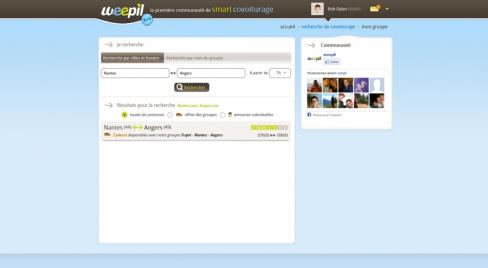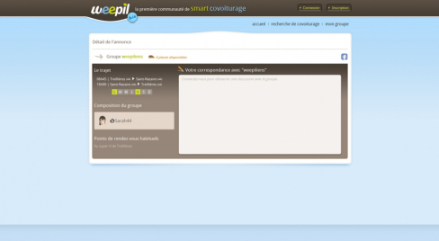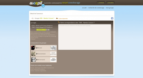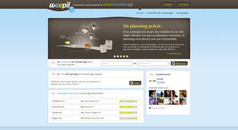 weepil est un site ambitieux de covoiturage qui propose la gestion du covoiturage régulier. L'utilisateur peut créer ou rejoindre un groupe de covoiturage effectuant un trajet régulier (généralement domicile-travail).